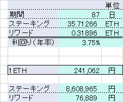 ※ステーキング額ですが、期間中に1~2万円ほど、新規でイーサリアムを購入しステーキングに追加